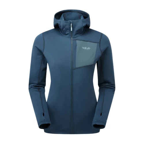 Rab Superflux Hoody — женская флисовая куртка с капюшоном для прохладной горной местности. Благодаря практичному флису Thermic ™ с добавлением эластана, куртка обеспечивает исключительную эластичность при энергичных подъемах. Гладкий, свободный крой сочетается с гладкими плоскими швами, чтобы максимально упростить движение при использовании между слоями во время занятий спортом в холодную погоду. Дополнительные функции включают сетчатую подкладку с начесом для повышения прочности и комфорта при ношении непосредственно на коже. Они также включают в себя большой нагрудный карман с застежкой-молнией YKK VISLON® и пару небольших боковых карманов для утепления рук, к которым легко получить доступ при ношении альпинистской привязи.