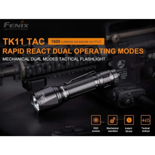 Фонарь Fenix TK11TAC LED — это высокотехнологичный тактический фонарь с расширенным функционалом. Благодаря яркости 1600 люмен и широкому лучу, он идеально подходит для правоохранительных органов, охраны и профессиональных задач. Фонарь работает в двух режимах: тактическом (доступны только режимы «Максимальный» и «Стробоскоп»), что важно в экстремальных ситуациях, и дежурном (Duty), включающем три уровня яркости и стробоскоп. Переключение между ними осуществляется с помощью магнитного поворотного кольца.