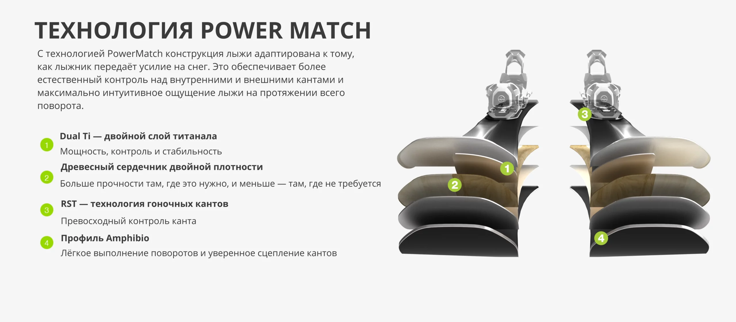 - Сердечник Power Woodcore — комбинация древесины по краям и синтетической пены в середине для оптимального распределения жесткости.