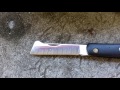 Лезвие изготовлено из высокопрочной нержавеющей стали. Латунная заклепка не даст лезвию расшататься и выскочить из ручки. Лезвие ножа складывается в рукоятку. Благодаря ручке из пластика нож не выскользнет из руки.