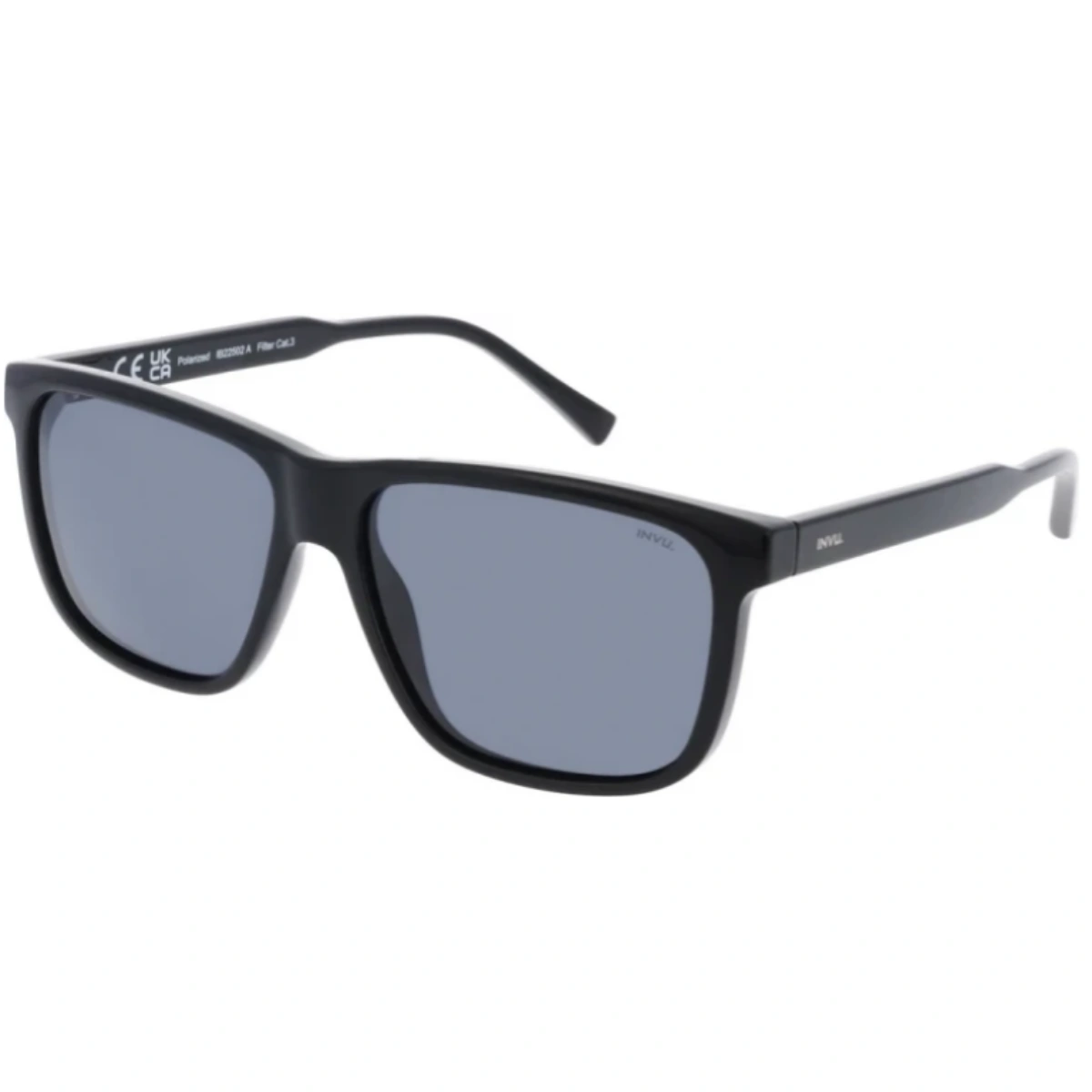 INVU IB22502A — sunt ochelari de soare pentru bărbați, cu formă dreptunghiulară, care vor completa perfect un look cotidian. Modelul este realizat pe culoarea clasică neagră și este dotat cu lentile polarizate gri. Rama este fabricată din plastic modern (celuloză-propilenă), ceea ce face ochelarii ușori, flexibili și confortabili pentru o purtare îndelungată.