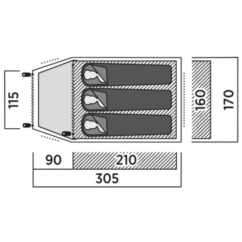 • Состав текстильных волокон — внутренняя палатка — 100% полиэстер