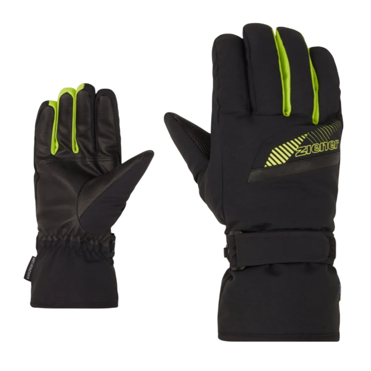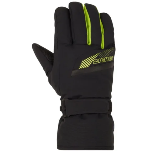 Ziener Gordanus — спортивные мужские горнолыжные перчатки оснащены мембраной Aquashield®, которая защищает от воды и ветра, обеспечивая воздухопроницаемость и комфортный микроклимат. Застежка-защелка гарантирует надежную фиксацию на запястье.