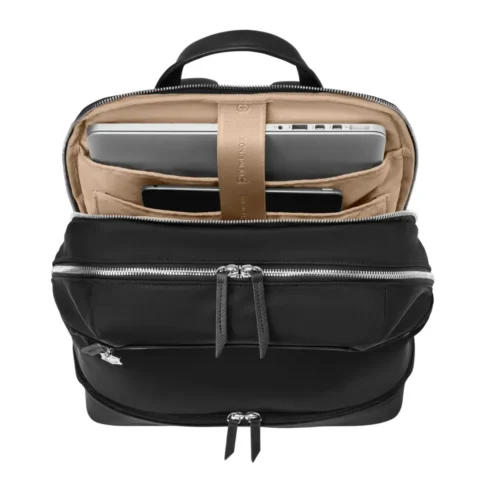 Рюкзак Victorinox Victoria Signature Deluxe — Сумка для ноутбука 15″ с карманом для планшета 10″ — это стильное и практичное решение для активных людей. Рюкзак поможет вам легко перемещаться между работой и отдыхом, обеспечивая удобство и элегантность. Внутренняя организация тщательно продумана для хранения рабочих принадлежностей и личных вещей. Благодаря съемному мешочку, который превращается в элегантный клатч, вы всегда будете готовы к вечернему выходу.