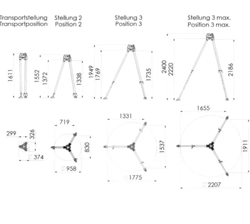 - Углы установки — ножки могут быть зафиксированы под тремя разными углами раскрытия