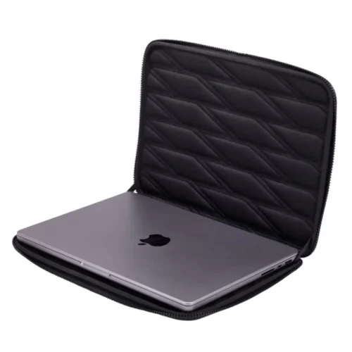 Thule Gauntlet 5 sleeve MacBook 14 — это тонкий чехол с жестким корпусом, обеспечивающий усиленную защиту для MacBook Pro® 14 дюймов. Его главная особенность заключается в том, что вы можете работать на ноутбуке, не вынимая его из чехла, что особенно удобно в поездках или при работе в кафе.