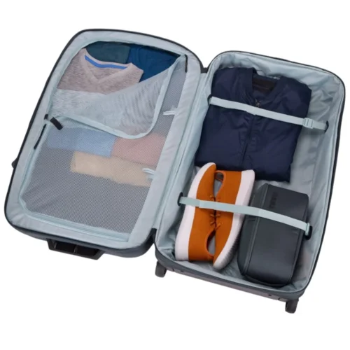 • Широкое отверстие позволяет легко укладывать вещи, а внутренние сетчатые карманы помогают отделить чистую одежду от грязной