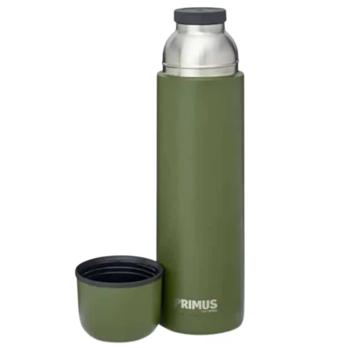 Термос Primus Classic Light Vacuum Bottle 1.0L Olive Drab Green — прочная модель изготовлена из высококачественной нержавеющей стали. Этот материал устойчив к коррозии, потому будет хорошо работать в условиях улицы. Следует отметить, что он не содержит вредных соединений BPA. Закрывающаяся крышка позволяет напитку оставаться теплым немного дольше.