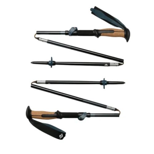 • Складная конструкция Z-Pole — палки складываются в три секции, соединенные внутренним кевларовым шнуром, что позволяет экономить место в багаже или рюкзаке