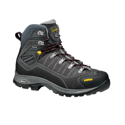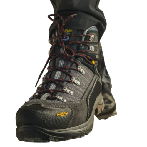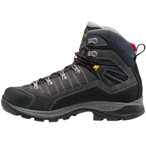 Asolo Drifter EVO GV MW graphite/gunmetal — reprezintă versiunea specializată a popularilor bocanci de trekking, concepută pe un calapod lat (Wide Fit) pentru a oferi confort maxim persoanelor cu piciorul lat. Modelul este ideal pentru drumeții lungi și trekking clasic, unde este necesară o susținere sigură a gleznei și protecție împotriva intemperiilor. Partea superioară a bocancului combină pielea întoarsă impermeabilă cu nylonul Cordura rezistent, făcând încălțămintea durabilă în fața deteriorărilor mecanice. Membrana Gore-Tex garantează picioare uscate, în timp ce talpa Vibram Duo Radiant oferă stabilitate și aderență sigură pe cele mai dificile reliefuri.