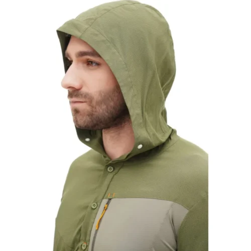 Turbat Maya Hood Trek Mns capulet olive — este o cămașă tehnică pentru bărbați, dotată cu glugă și concepută special pentru drumeții lungi și activități în aer liber sub radiații solare intense. Modelul combină ușurința unei cămăși clasice de trekking cu protecția suplimentară oferită de gluga adâncă. Țesătura produsului are proprietăți respirabile excelente și capacitatea de a se usca instantaneu, fiind indispensabilă pentru parcurgerea terenurilor deschise. Croiala bine gândită și elasticitatea materialului garantează confortul în timpul purtării rucsacului și al mișcărilor active.