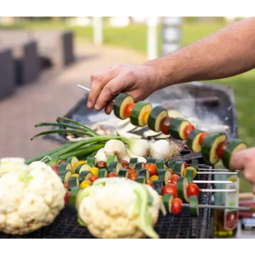 - Capetele curbate sub formă de inel permit prinderea și întoarcerea ușoară a frigăruilor folosind ustensile de grătar