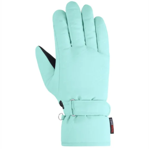 Ziener Keva – mănuși de schi pentru damă, calde și confortabile, fiind dotate cu izolația de înaltă calitate PrimaLoft®, care reține excelent căldura corporală. Aceste mănuși se remarcă printr-un confort deosebit la purtare, în timp ce tehnologia Thermoshield®, cu proprietăți hidrofobe și rezistență la vânt, garantează că mâinile dumneavoastră vor rămâne calde și uscate pe pârtie. Sistemul de închidere reglabil de la încheietură asigură o potrivire ideală pe mână, iar materialul exterior al produsului este certificat conform standardului ecologic bluesign®.