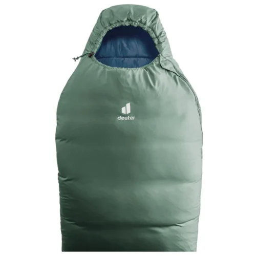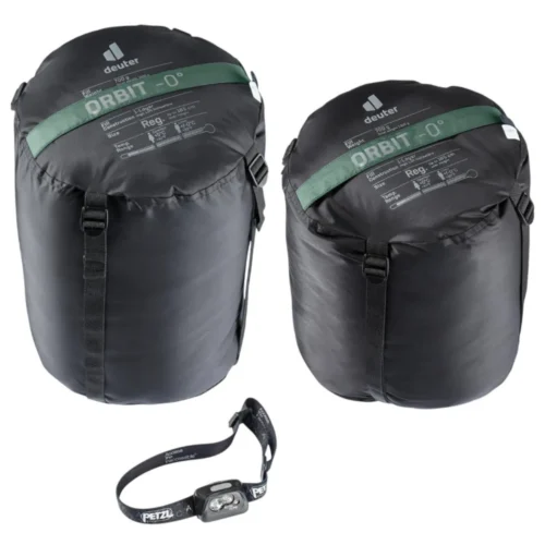 Sac de dormit Deuter Orbit 0 ivy-ink — materialul exterior al acestui sac este fabricat 100% din materiale reciclate și este conceput fără cusături exterioare. Această construcție oferă o performanță termică superioară și previne pătrunderea umezelii. Repartizare  la 360° a umpluturii High-Loft Hollowfibre asigură un climat termic plăcut în interior. Detaliile bine gândite, precum protecția la fermoar împotriva agățării, buzunarul interior pentru obiecte de valoare și gluga funcțională conturată, împreună cu materialul exterior robust și performant, fac din acest sac un partener durabil pentru perioadele de tranziție (primăvară/toamnă).
