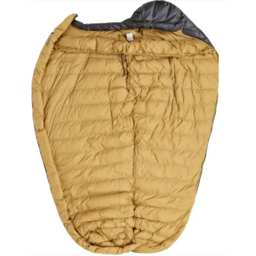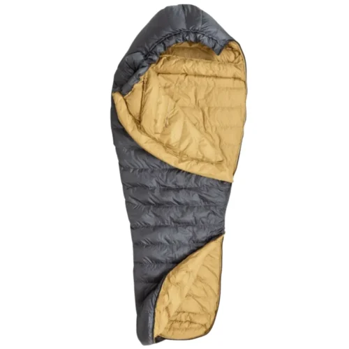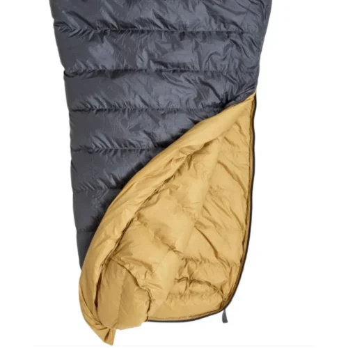 Turbat Nox 400 grey/cheddar orange — este un sac de dormit cu puf, ușor și compact, creat pentru drumeții și călătorii de sezon intermediar, unde greutatea și volumul minim al echipamentului sunt esențiale. Umplutura constă în puf de gâscă ucrainean de înaltă calitate, cu un indice de 750 FP, asigurând o izolare termică excelentă la dimensiuni reduse. Modelul se remarcă prin fermoarul central lung, care permite o utilizare facilă, și prin forma bine gândită a zonei picioarelor (footbox) pentru o poziție naturală a tălpilor. Designul gri cu elemente portocalii vibrante (Grey/Cheddar Orange) îl transformă într-un accesoriu vizibil și stilat.